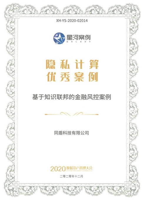 此外,为了推动大数据在社会生产生活中的应用,中国信息通信研究院、中国通信标准化协会大数据技术标准推进委员会(CCSA TC601)于不久前共同组织开展了2020大数据星河案例征集的活动。经过函评和终审,在隐私计算方面共评选出10项标杆案例和15项优秀案例,同盾科技基于知识联邦的金融风控案例荣获隐私计算优秀案例。