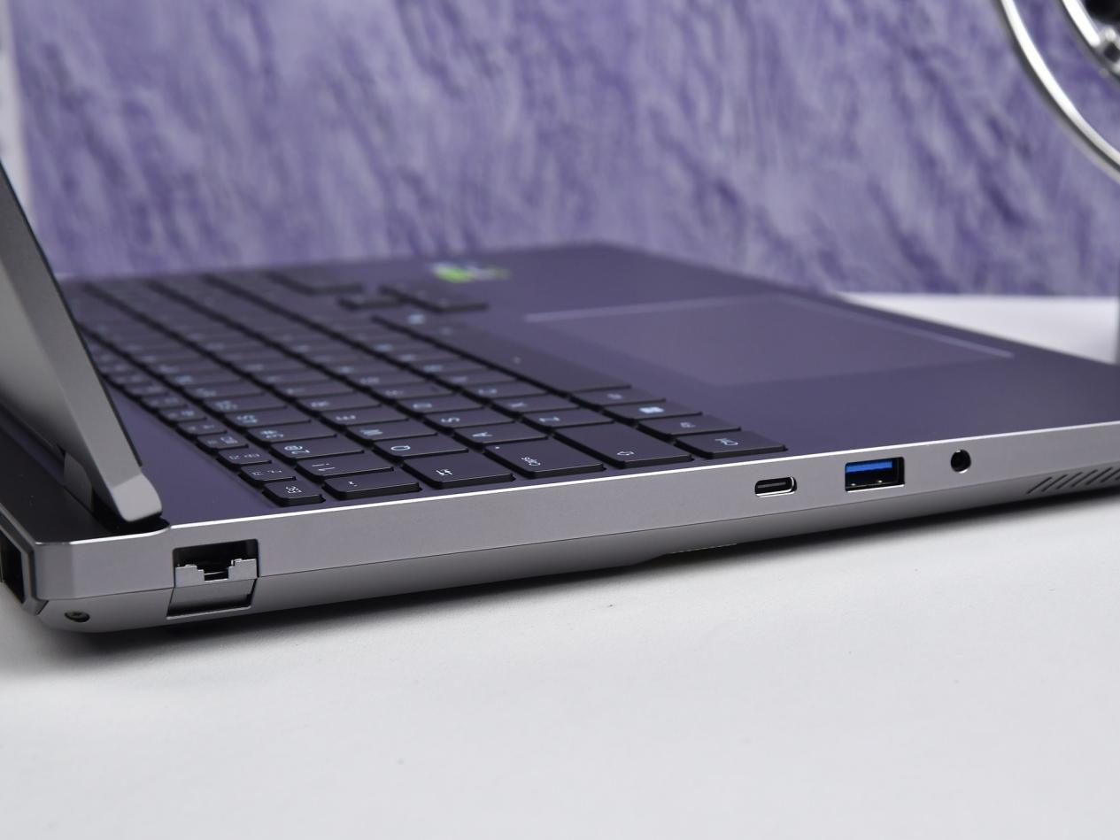 接口扩展方面,这款产品的接口布局位于左右两侧和尾部,左侧配有RJ45网口、USB-C,USB-A和3.5mm耳麦插孔;右侧配有2个USB-A和安全锁孔;尾部配有雷电4、电源插孔、MiniDP 2.1视频端口以及HDMI2.1视频端口。大满贯接口配置完全可以满足用户的任何拓展需求。