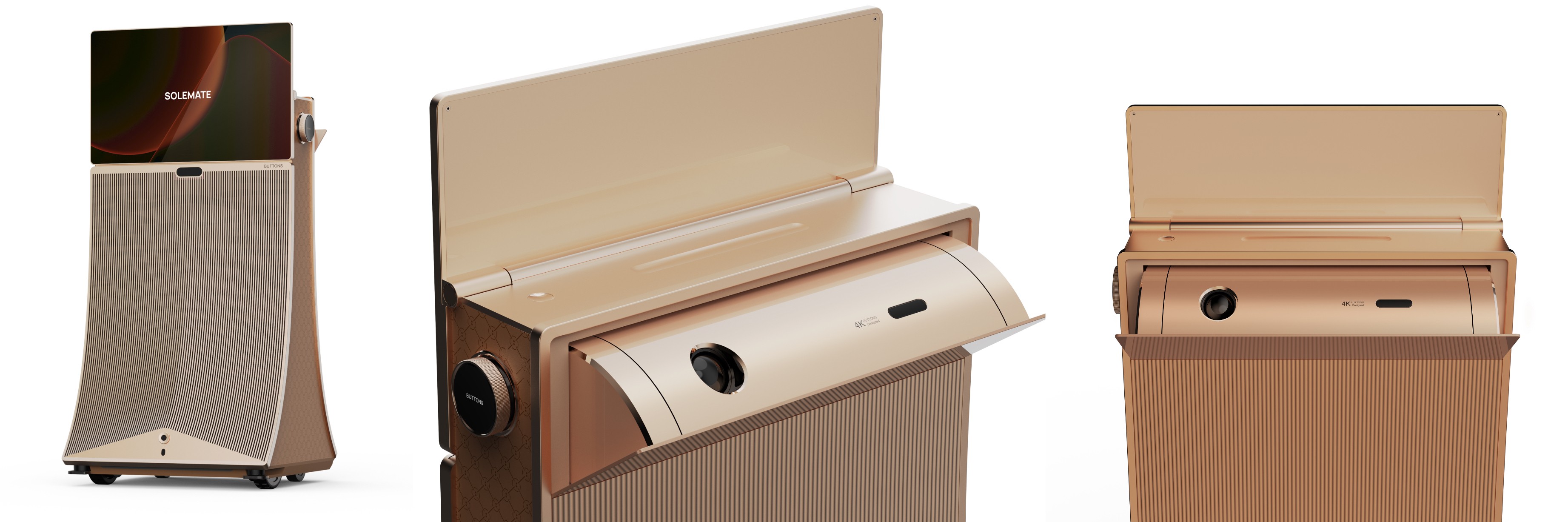 SOLEMATE集成了21.5英寸高清触控屏与HiFi高保真音响,更搭载了4K投影(高达1200流明),重新定义了家庭影音的感官标准。无论是激光投影营造的巨幕影院,还是触控屏上的日常内容,SOLEMATE都能还原极具临场感的沉浸式声场。声音不再只是“听见”,而是被精准定位与层层包裹的“感知”——从细微的环境音到震撼的爆破声,每一处细节都得以真实呈现,让用户仿佛置身于画面中心,获得音画合一的极致感官盛宴。