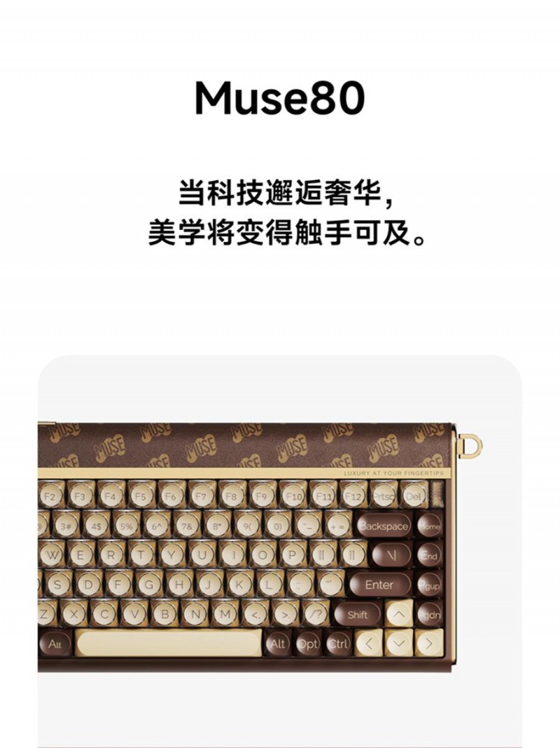 技术创新层面,ES98凭借双8K回报率与0.05ms延迟铸就竞技旗舰,ES87以星闪磁轴的顶尖精度与首创翻盖快拆设计革新体验,Muse80融合奢侈品牌剪裁灵感,用皮革+CNC全铝工艺彰显奢华品位。