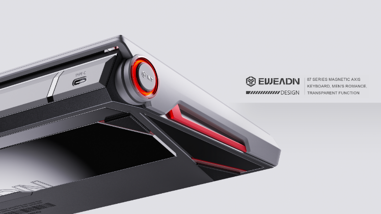 EX01滕王阁款,色彩哲学汲取自《滕王阁》中的"潦水尽而寒潭清,烟光凝而暮山紫"等经典意象,将文学意境转化为现代设计语言,并以"建筑可阅读"为理念,通过6063铝合金机身重现古建结构美学,24K金键帽隐喻文明传承,使科技产品成为 "可触摸的文化遗产"。