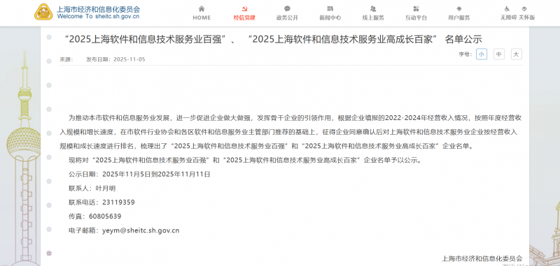 2025年11月5日,上海市经济和信息化委员会正式发布了“2025上海软件和信息技术服务业高成长百家”企业名单,上海卓易科技旗下全资子公司——上海卓悠网络科技有限公司(以下简称“卓悠网络”)凭借近年来在软件和信息技术服务领域的卓越表现与快速成长,荣幸入选。