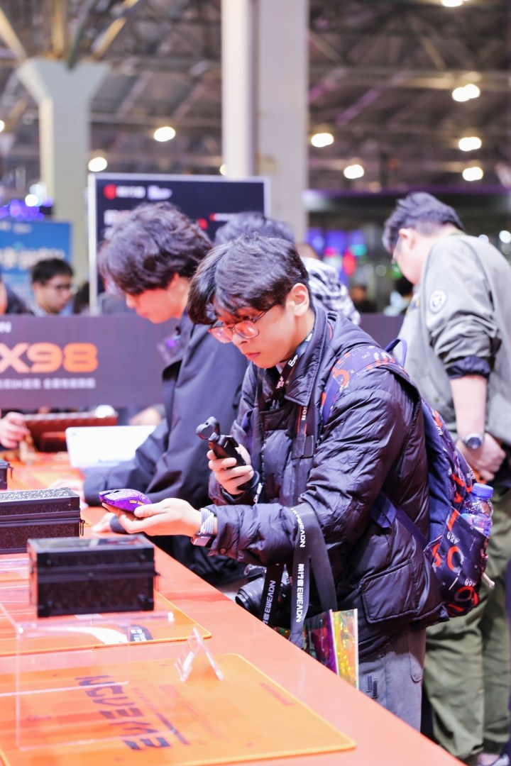 展会上,前行者集中展出多款新品,其中包括有X98、Z7、ES98、ES87、MUSE80等,吸引了大量客制化爱好者、外设发烧友、游戏玩家等前来亲自体验。