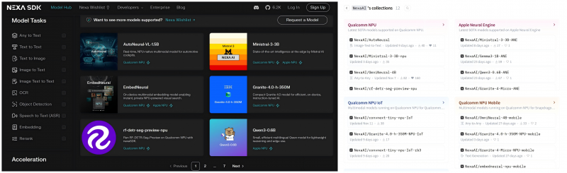 持续更新的前沿端侧模型库:Nexa Model Hub不断扩充,让最先进端侧小模型触手可及。