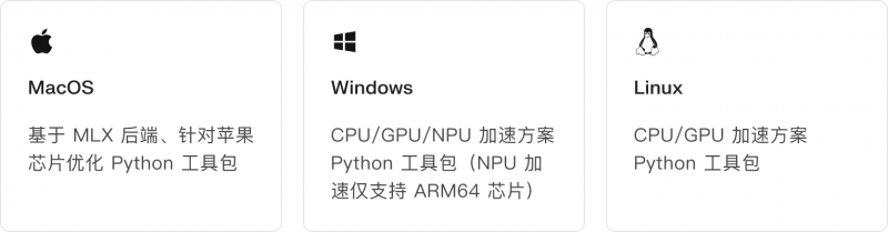 目前Nexa CLI支持 MacOS、Windows、Linux(并支持Docker运行),同时提供Python API, IOS Swift API、Android Kotlin/JAVA API开发工具包。