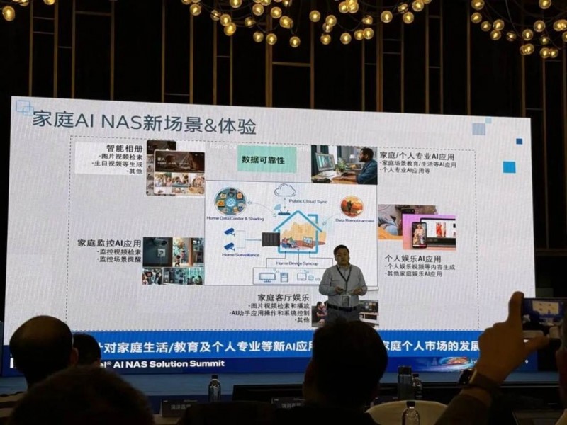 也是此前不久,英特尔联合多家生态伙伴举办了AI NAS解决方案峰会,这场峰会很有意思。作为底层芯片巨头,英特尔展示的全场景产品矩阵,从个人到企业级,从低功耗奔腾到至强处理器,几乎覆盖了所有可能的NAS算力需求。但峰会现场的技术专家们在讨论“AI NAS”的定义与标准时,同时将极空间视为这个赛道的"活字典"。