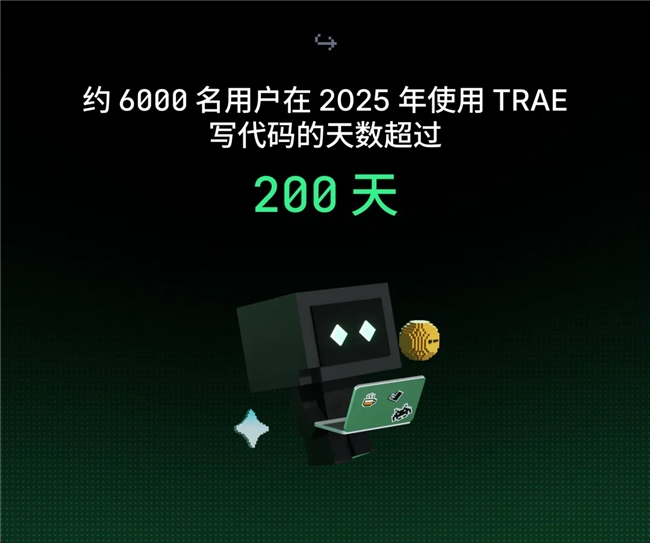约 6000 名用户在 2025 年使用 TRAE 写代码的天数超过 200 天 ,这些用户代也表了最早注册、连续活跃的一批忠实用户。