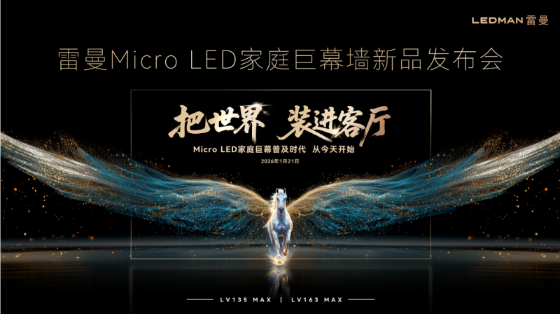 作为A股第一家上市的LED显示高科技公司,雷曼光电的技术突破为行业破局提供了关键范本。1月21日,雷曼在深圳发布新一代 Micro LED家庭巨幕墙,创新打破行业瓶颈。创始人、董事长兼总裁李漫铁先生发布LV135 Max(135英寸)与LV163 Max(163英寸)两款新品。在国家超高清视频产业政策推动下,雷曼通过关键技术突破和产业链整合,针对性解决成本、耗能、性能、场景等核心障碍。