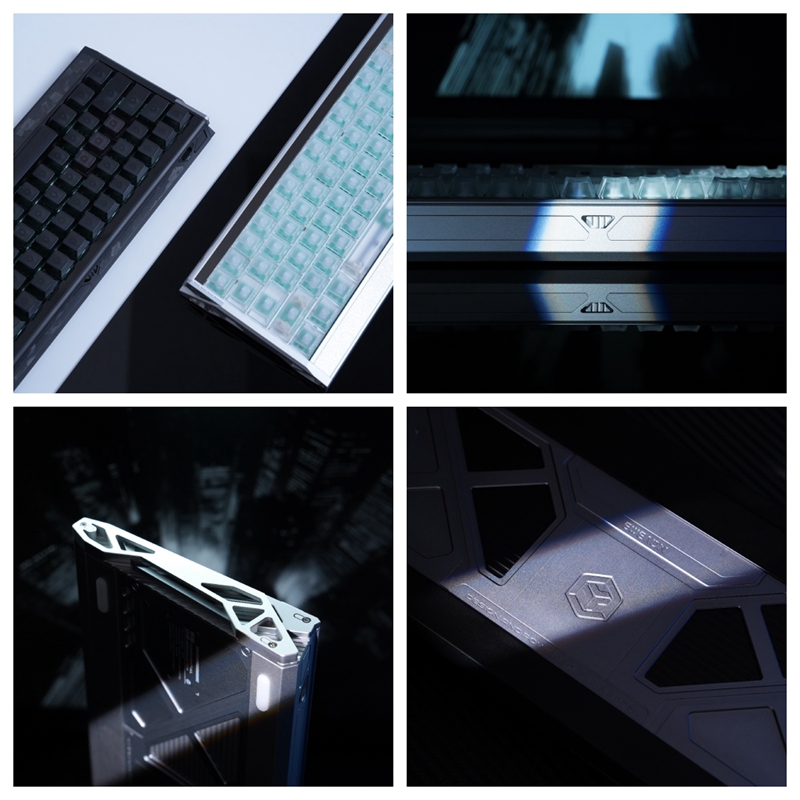 从官方释出的细节图可见,ES68 破晓在设计语言与工艺用料上均属上乘,在当前电竞外设市场中极具辨识度。黑白双配色版本均采用全铝精工锻造机身,金属质感内敛而高级;机身侧边镂空搭配背部品牌 Logo 装饰背板,光影交错间尽显未来科技氛围。前铲工艺尤为亮眼:黑色版采用乱纹锻碳工艺,白色版则为不锈钢冰花工艺,质感层次分明。后侧背板设置双 USBC接口与独立物理开关,搭配专属快捷按键,兼顾实用性与操作便捷性。从整体造型到细节打磨,处处彰显旗舰级产品的匠心与定位。