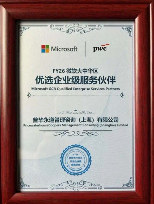 Microsoft GCR Enterprise Partner Summit 作为微软在大中华区规模最大的年度盛会,每年邀请重点战略合作伙伴参与,交流前沿技术以及市场战略,并对合作伙伴过去一年的卓越贡献予以颁奖。每年,普华永道都应邀参加了微软往年举行的生态伙伴峰会。本次获授该荣誉,不仅体现了微软对普华永道在企业级客户服务、解决方案交付与生态协同能力方面的认可,也标志着双方在企业级AI转型领域的合作迈入更成熟阶段,为双方进一步深化联合方案与交付协作奠定了能力背书。