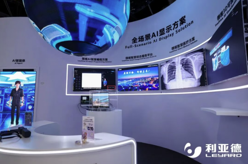 面向C端市场,利亚德展出AI创新产品,包括AI吧唧、AR眼镜等。同时,领视3D可视化方案、领视智慧综合服务平台、领视AI编程方案、领视智慧医疗方案及AI球屏互动方案等同步亮相,全面覆盖智慧城市、医疗、文旅、教育等多元领域。
