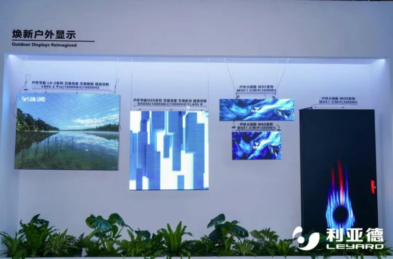 户外显示场景中,利亚德推出LA2、NSO、MOC、MGS、MOK五大系列,精准匹配户外长效运行、灵活安装等需求。LA2系列采用型材铝合金轻量化机身,搭配高刷高亮与多重节能技术,是户外长效稳定显示的实用之选;NSO系列搭载超高亮度与高刷新率,无惧强光直射,画面始终绚丽清晰;MOC系列有三种尺寸箱体(960x270mm, 800x270mm, 640*270mm),可自由左右拼接,支持多种安装方式;MGS户外小间距系列主打高端近距观看,保障屏幕永不黑屏,打造精致显示效果;MOK系列凭借超高清画质与云智能管理,全面升级户外广告展示与运营。