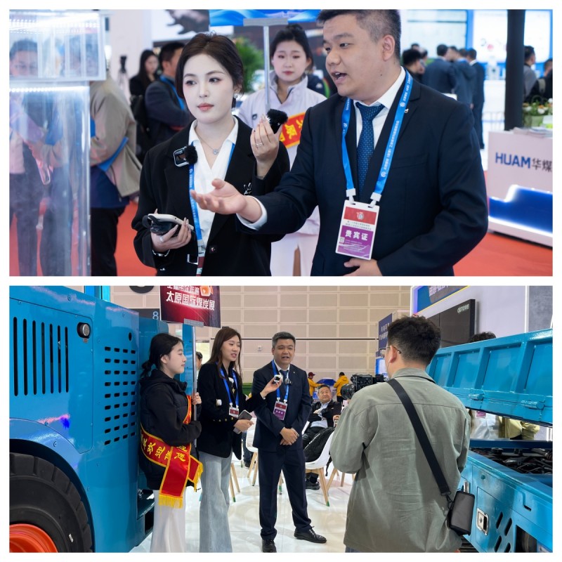 展会期间,中感集团展位成为媒体关注的焦点之一。中央广播电视总台“科创中国”栏目、央视网、山西电视台以及太原煤炭展官方直播达人先后到访中感展位,对矿用设备局放监测系统、智能清仓机器人、KJ1760第三代数智矿压监测系统以及防爆柴油胶轮多功能安装机器人等核心展品进行了现场采访与实拍记录。