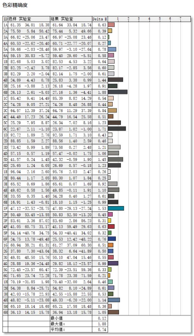 在色彩准确度的测试中,优派VX27G58-2K显示器平均ΔE值为0.74,最大ΔE为1.88。一般来说平均ΔE<2,人眼就基本上分辨不出色彩的差异,优派VX27G58-2K甚至做到了平均ΔE值≤1,最大值也不超过2,可以说即使面对部分专业显示器也毫不逊色。