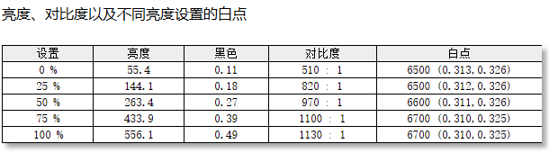 灰阶方面,显示器在30%-100%的亮度下表现十分稳定,色温维持在6650-6700K之间,比较贴近标准色温。