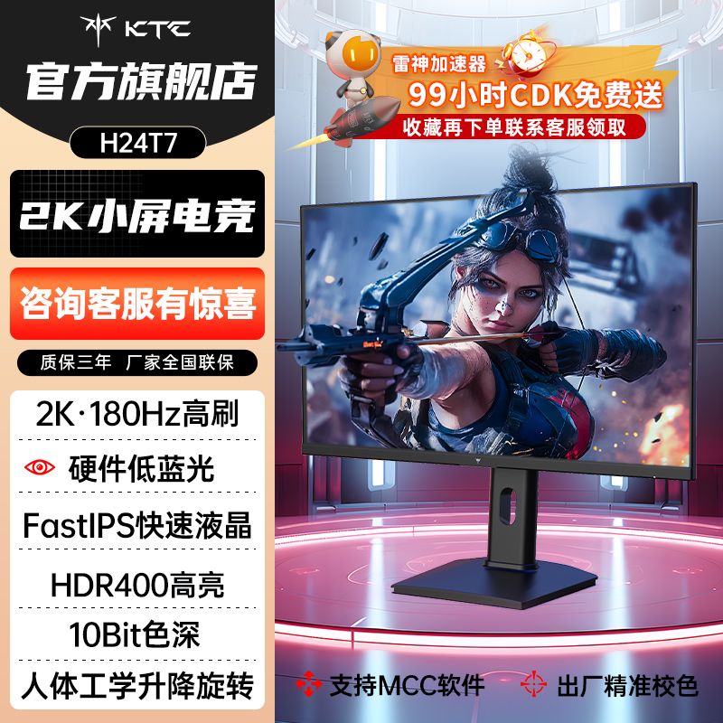 KTC H24T7是一款专为游戏玩家和高效办公人群打造的高性能显示器,拥有23.8英寸F-IPS广色域屏幕,支持2K高清分辨率和180Hz超高刷新率,画面清晰流畅,色彩还原真实细腻,带来沉浸式视觉体验;同时配备低蓝光护眼技术,有效缓解长时间使用带来的眼部疲劳。
