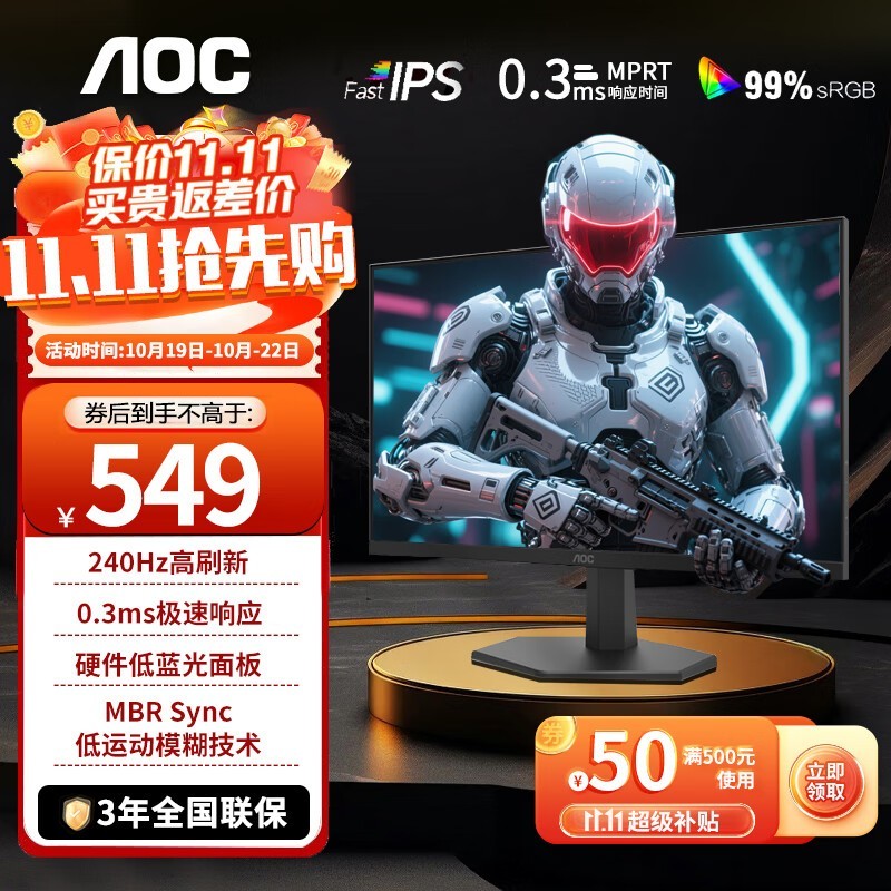 AOC 24G11ZE原价629元,在京东参加每满629减30、使用满500减50元优惠券的活动后,当前到手价仅549元,相比之前售价599元降幅达8%,喜欢的朋友别错过。
