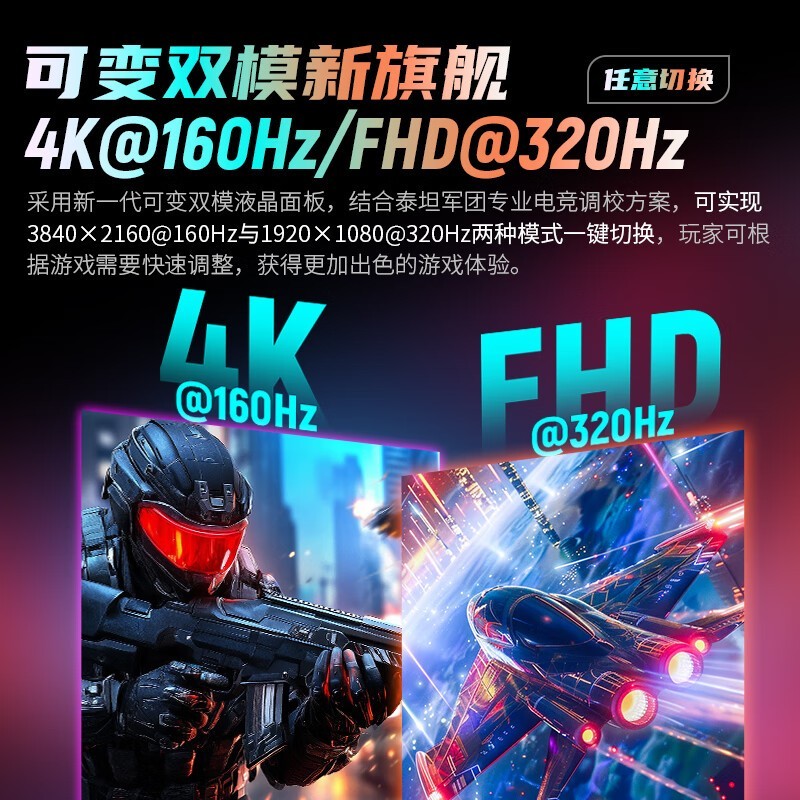泰坦军团 P2712V 27英寸4K超清160Hz双模320Hz FastIPS屏 HDR400硬件低蓝光 10Bit 1ms 旋转升降电竞显示器