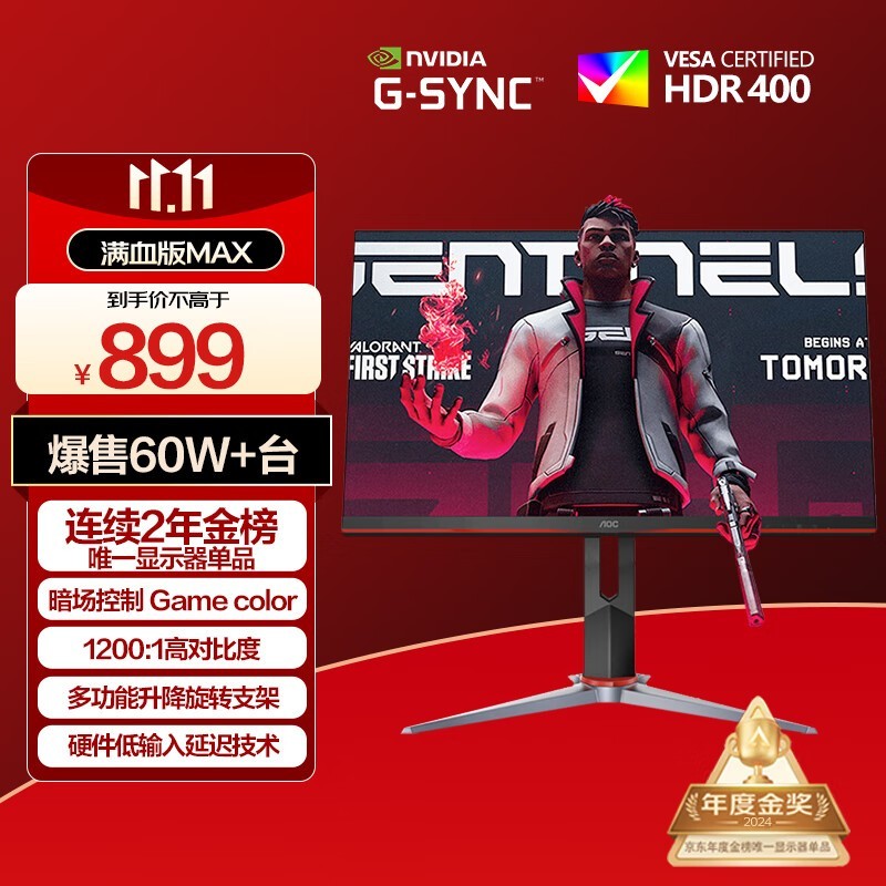 AOC Q27G2S/D 27英寸2K 原生180Hz IPS HDR400 1ms 10Bit 满血小金刚MAX 游戏电竞显示器