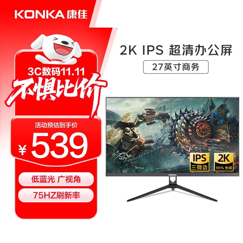 目前康佳 KM2719Q京东活动售价539元,参与满200减20及国家补贴5%优惠,下单1件到手价仅需493.1元,相比原价550元节省超50元,性价比出众,是办公升级的理想之选。