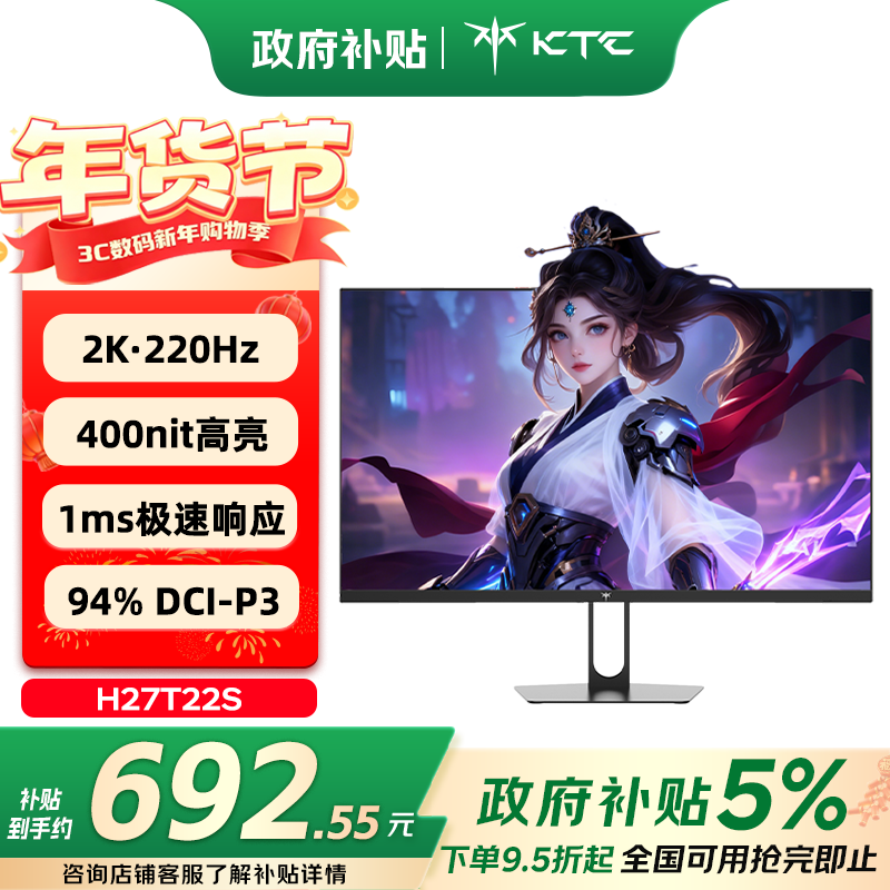 KTC H27T22S 27英寸2K高刷Fast IPS电竞显示器