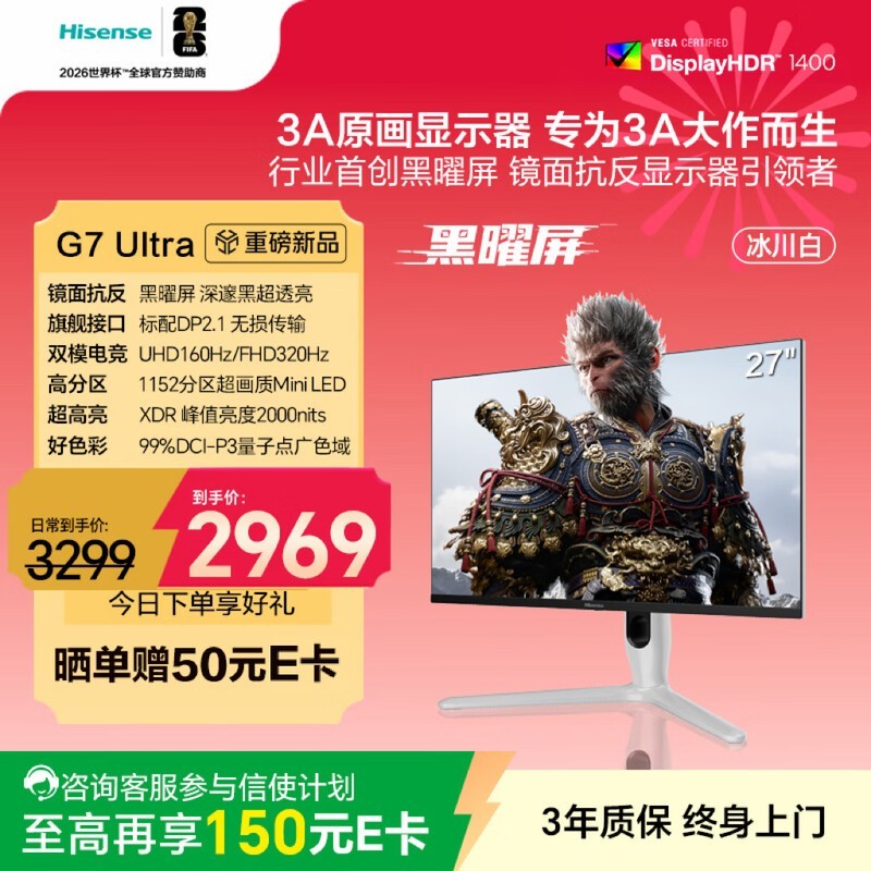 海信 G7 Ultra 4K电竞显示器 27寸 Fast IPS 4K 144Hz 1ms GTG 超清竞技创作旗舰