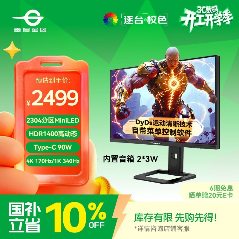 泰坦军团 P275MV MAX以2499元的当前售价提供MiniLED+4K+HDR1000的旗舰级视觉体验,在同价位产品中背光分区数量和色域覆盖均较为突出。576分区MiniLED带来的高对比度和HDR效果是这款显示器的核心卖点,适合对画质有较高要求的内容创作者和追求沉浸式游戏体验的高端玩家选择。