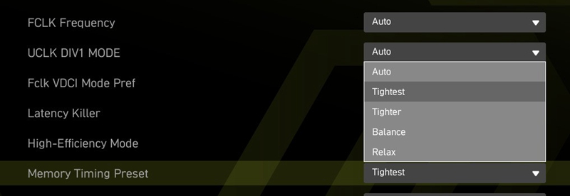 可以看到好香(Relax)档位主要调节了小参中tWR、tWTP、tRRD_S、tRRD_L、tREFI这些参数选项,优化后效果立竿见影。除了好香(Relax)档位,我们也对其他三个设置选项进行了测试。