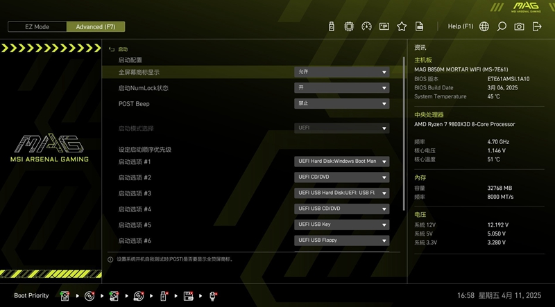 2 微星 B850M MORTAR WIFI迫击炮主板BIOS