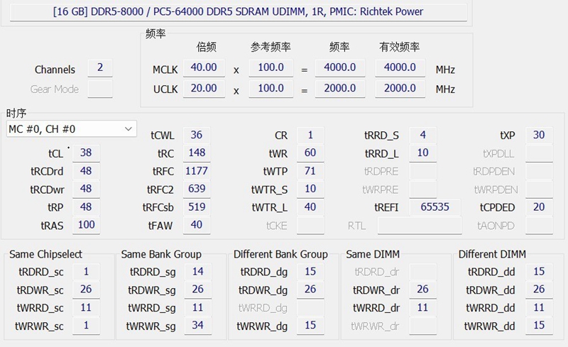 我们首先测试目前最重要的内存超频能力,先来看一下常规默认情况下XMP 8000MT/s内存的读写性能表现,使用AIDA 64进行测试。