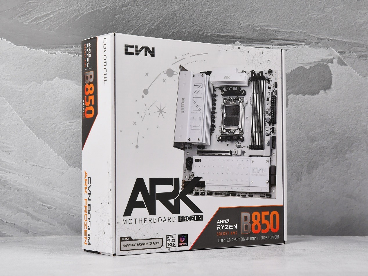 在DIY硬件领域,一款兼顾颜值、性能与实用性的主板,往往能成为玩家搭建主机的核心选择。七彩虹CVN系列主板以高颜值和扎实的用料收到很多玩家的关注,新推出的七彩虹 B850M ARK FROZEN V14 方舟更是以星舰概念为核心,融合点阵艺术与星图元素,在供电强、拓展足、颜值高的基础上,进一步优化设计与功能,为游戏玩家打造更好的平台,下面我们就带来这款主板的评测。