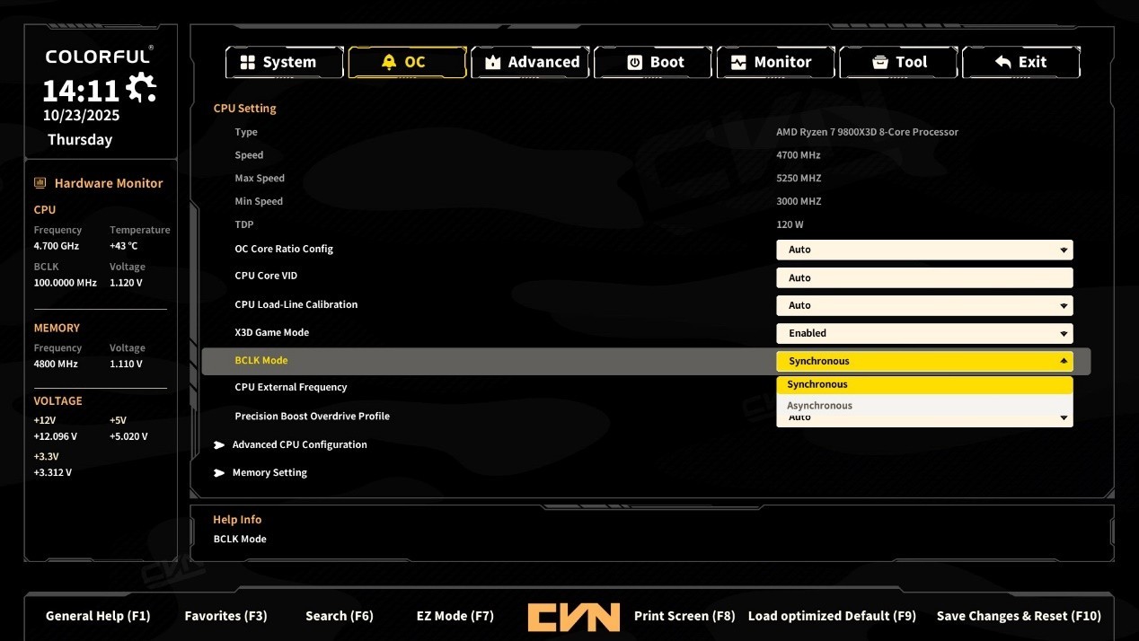 针对AMD X3D系列CPU,七彩虹 B850M ARK FROZEN V14 方舟的BIOS还专门加入了AMD X3D Gaming Mode,开启后可优化CPU缓存性能,提升游戏帧率;此外,还提供“低延迟模式” 与 “高效能模式”,分别适配游戏场景与生产力场景,满足不同用户的需求。