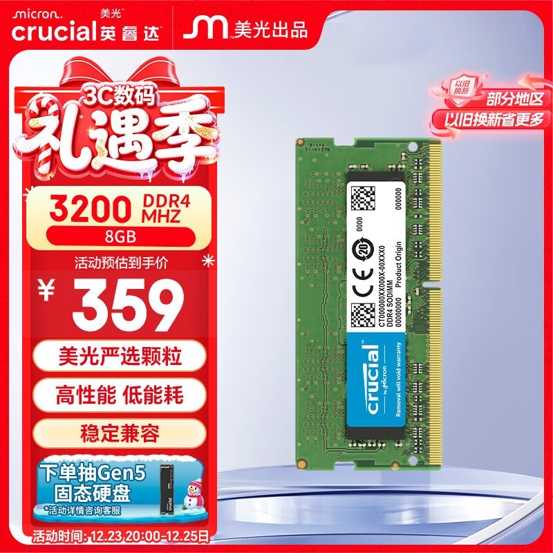 对于想在有限预算内提升系统响应与游戏体验的用户来说,英睿达 8GB DDR4 3200 内存 359元是一步到位的实用之选。它以高频加速日常与娱乐效率,用可靠品质护航长时间使用,趁当前好价入手即可畅享流畅双场景体验。
