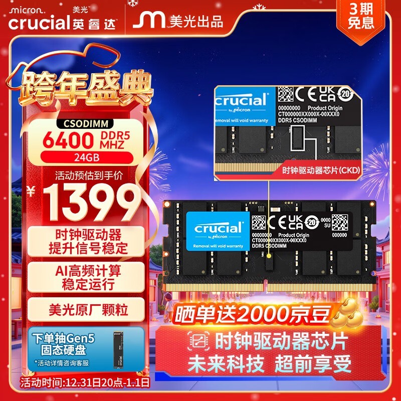 英睿达 24GB DDR5 6400 内存条 高速低耗大容量性能之选