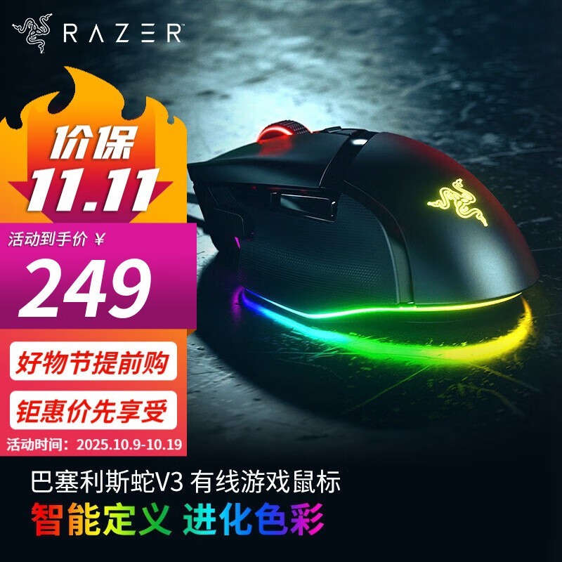 雷蛇 巴塞利斯蛇 V3原本售价 224.10 元,现在京东此款活动售价 249 元,参与满 1 元打 8.8 折优惠活动,下单 1 件,实付低至 219.12 元。非常适合追求高精度的玩家以及游戏爱好者或需要高性能鼠标的消费者,普通用户也可根据自身实际需求考虑是否购买。
