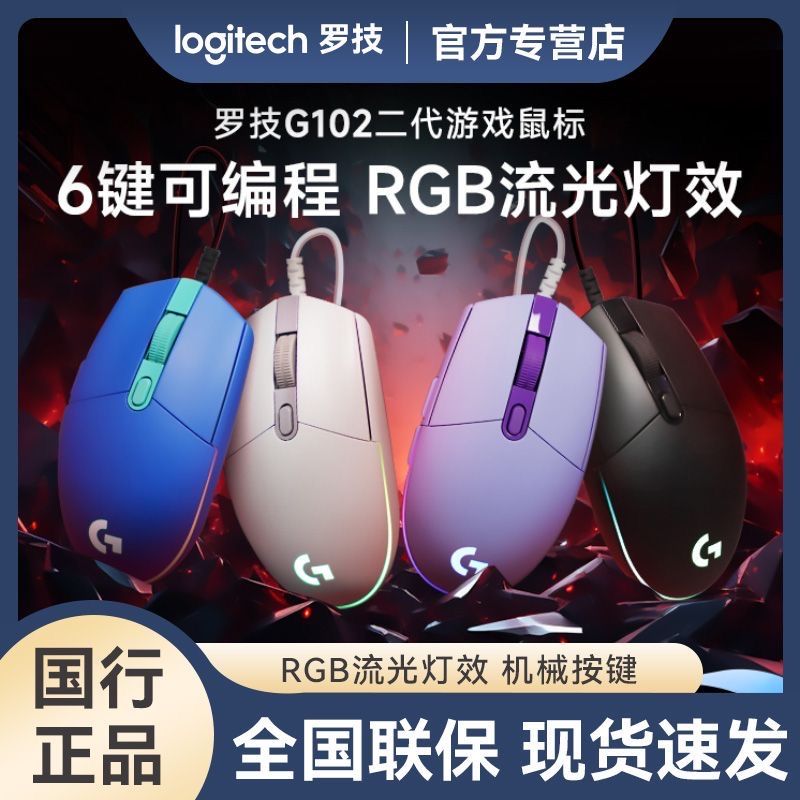 罗技 G102有线游戏鼠标8000DPI宏编程二代流光RGB灯效