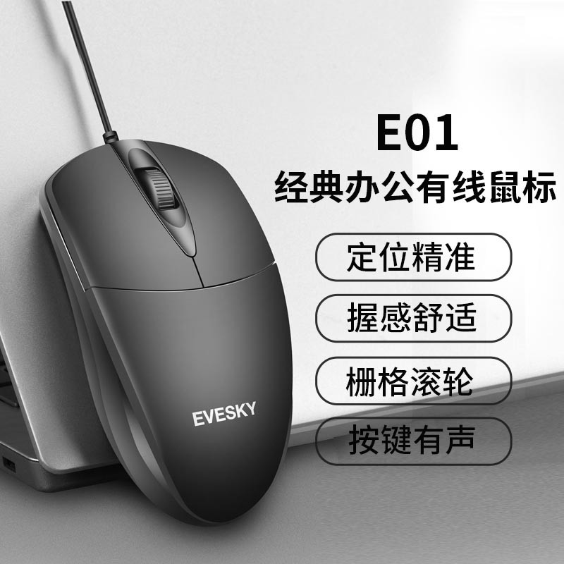 EVESKY有线鼠标,既适合游戏玩家在cf等电竞游戏中使用,展现机械般的精准操作,也非常适合家庭日常使用,连接笔记本或台式电脑都很方便,即使在网吧使用也能有出色表现。而且EVESKY还是有线静音鼠标,使用时不会产生过多噪音。