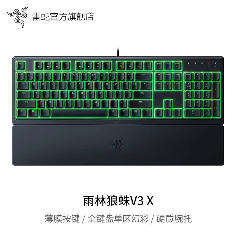 雷蛇 雨林狼蛛V3 配备 Razer Chroma RGB 全键可自定义灯效,支持与 Razer Synapse 软件同步,打造个性化光效氛围并与雷蛇外设实现灯效联动。右上角集成多功能控制旋钮与多媒体快捷键,可快速调节音量、亮度与播放状态,提升使用便捷性。内置板载内存,可存储多套自定义配置,随插随用无需重复设置,是追求性能、可玩性与品牌信仰兼具的用户的高性价比之选。