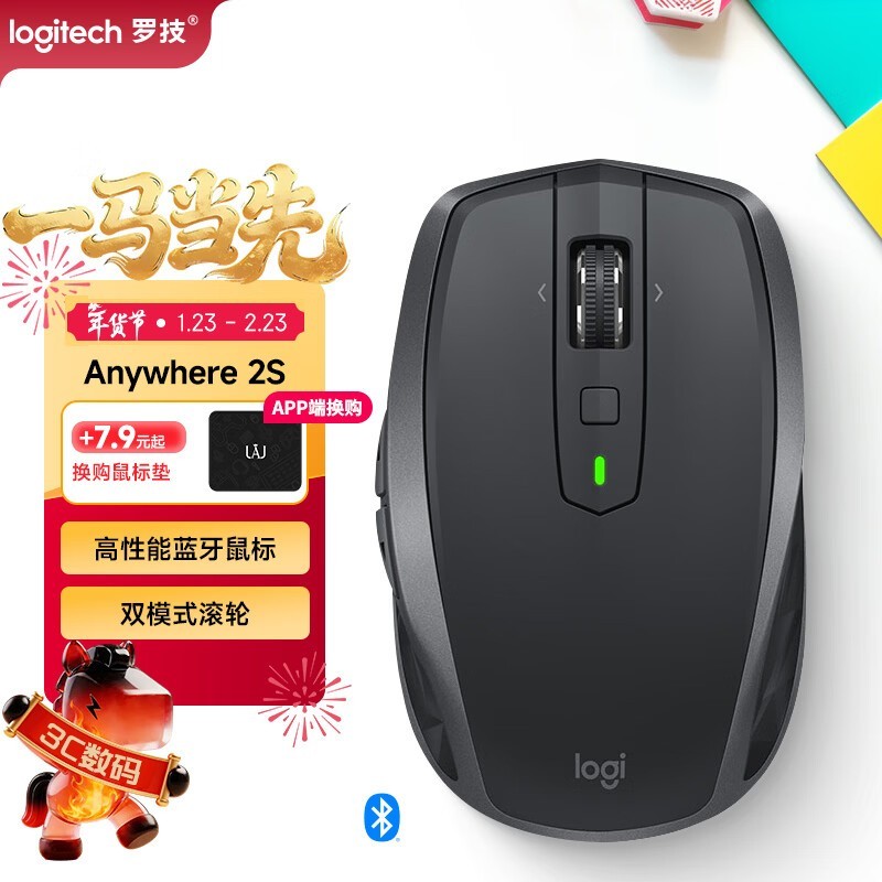 罗技 MX Anywhere 2S 支持蓝牙/优联双模连接与多设备一键切换并配备长续航锂电池