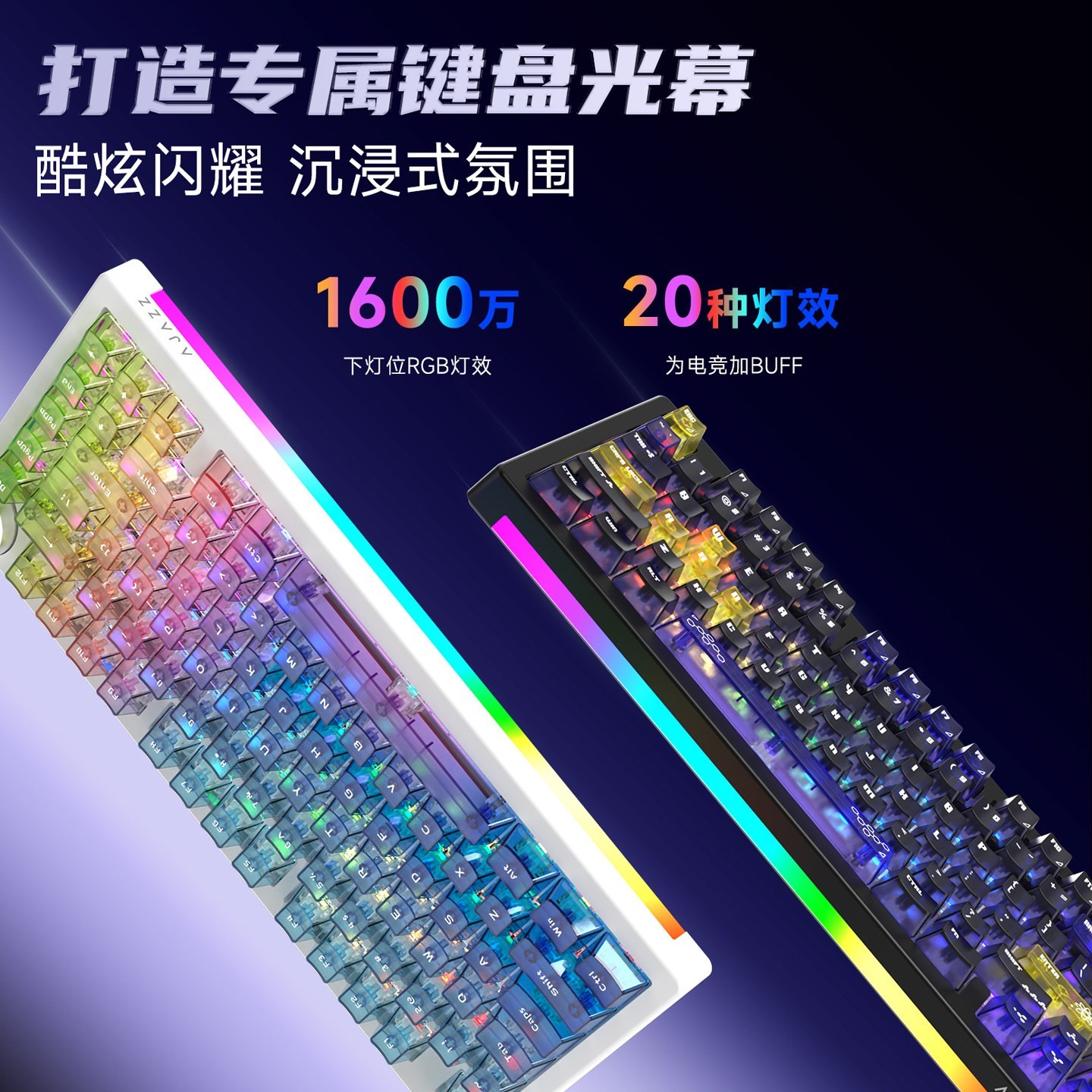 键帽为 PBT 材质并采用热升华字符工艺,耐磨抗油且字符清晰。布局保留常用快捷键位置,可通过驱动自定义宏与灯效,强化个性与效率。黑爵 AK820V2 以紧凑造型与多模连接,为注重便携与手感的玩家打造高性价比选择。