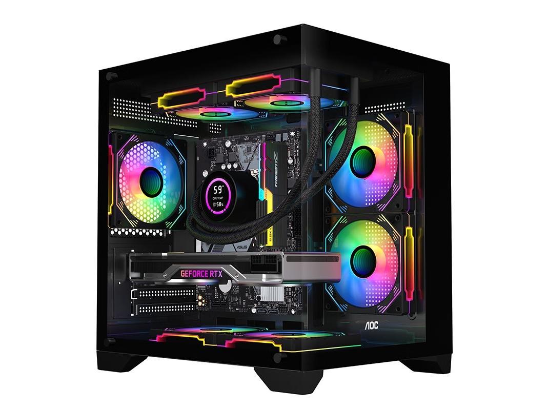 AOC CG391B黑色 游戏电脑主机海景房机箱 双面玻璃/支持MATX主板/240水冷/7风扇位/270°全景/左右分仓