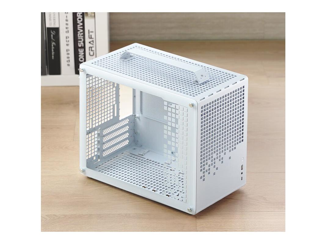 外观延续简约白化喷涂与全景侧透玻璃 可直观展示内部硬件与灯效细节。底部抽取式防尘网减少灰尘进入 降低维护频次。整体在精巧尺寸中兼顾散热扩展与装机美感 适合追求颜值与实用平衡的 DIY 用户。