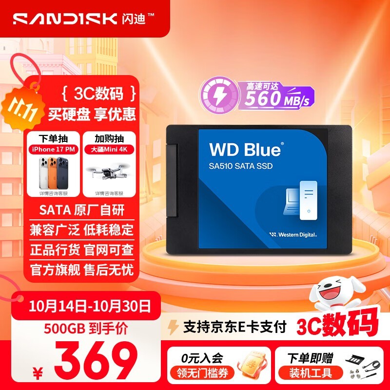 目前京东正在大力促销,西部数据 SA510原价369元,现在仅需359元即可到手,性价比出众,库存有限,喜欢的朋友抓紧入手,不容错过!