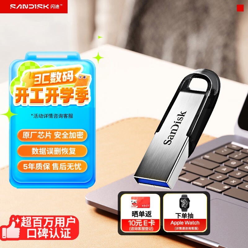 接口采用 USB 3.0 规范,兼容主流设备即插即用,无需额外驱动。支持 Windows、macOS 与部分 Linux 系统。闪迪 CZ73 以高速传输与便携耐用,为办公、学习及数据备份提供值得信赖的移动存储伙伴。