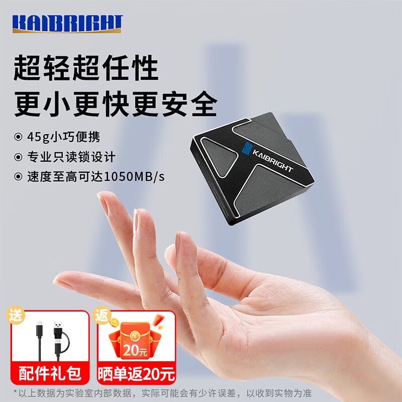 KAIBRIGHT 1TB 2000MB/s高速传输,轻薄金属设计,700元档高效移动存储之选