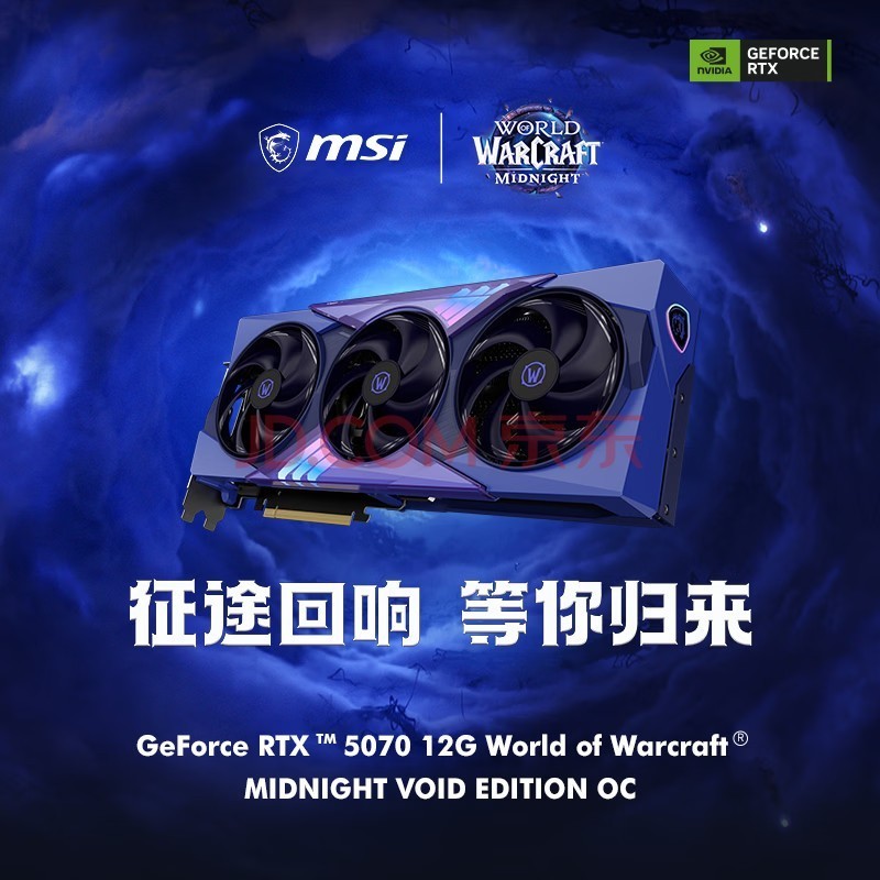 微星 RTX 5070 12G 魔兽世界 至暗之夜 黑色 三风扇 IP美学高效散热核心